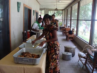 Breakfast was bread and tea or coffee. Rice pudding was also served once, Mongu rice is a well-loved staple in Zambia. Lunch and supper was buhobe (thick maize-meal porridge) or rice with fish meat or chicken and as vegetables either cabbage or kail. We did enjoy Irish potatoes as a treat on Sunday.(In Zambia potatoes are given the sobriquet Irish to differentiate them from sweet potatoes.) We are very much appreciative of the efforts of six of the ladies who undertook to cook for us all at each mealtime.
